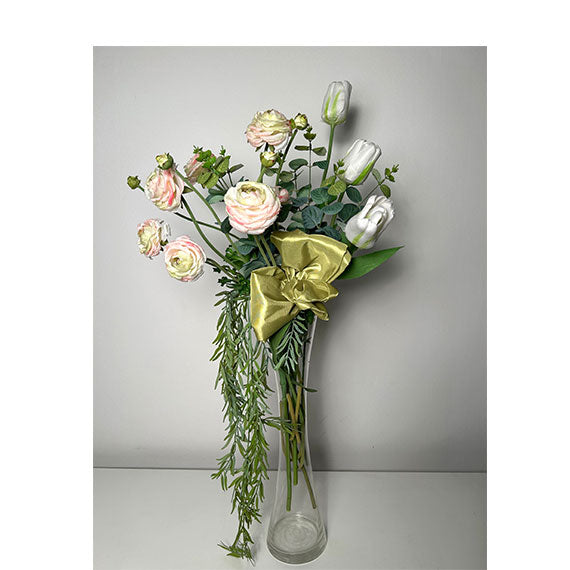 A modern, minimalist flower arrangement in a glass vase combining soft white flowers with calming green tones. This Teleflora „ Gree Whisper „ is clean, stylish, and ideal for contemporary interiors.