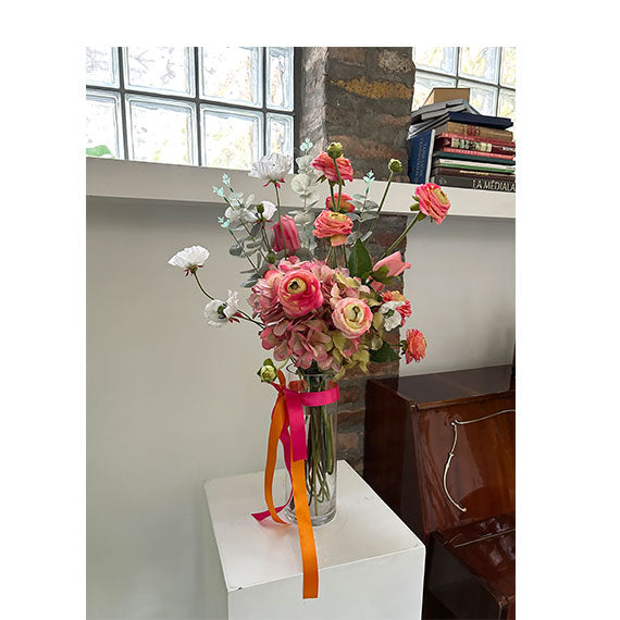Pastel blossoms with a velvety, realistic finish create a tender, dreamy arrangement. „ Soft Touch Romance „ is ideal for bedrooms and intimate spaces.