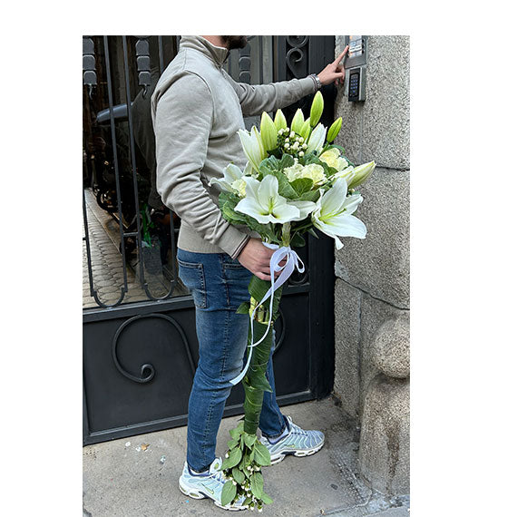 Da li lepota može biti tako tiha, a ipak ostaviti snažan utisak?Buket „ Anđeoski Cvet „ odiše čistotom i elegancijom, donosi osećaj mira i suptilne sofisticiranosti kroz nežne bele ljiljane i pažljivo odabrano zelenilo. Njegova jednostavnost krije posebnu čar, onu koja se ne nameće, već ostaje u sećanju.