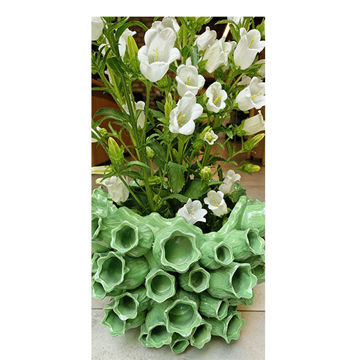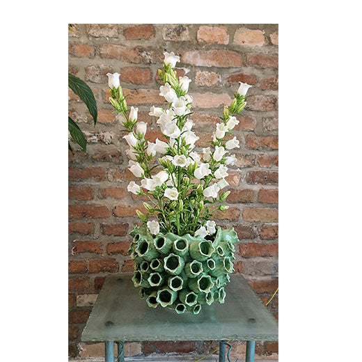 Tražite poklon « Za posebnu osobu »? Elegancija, stil, čistota i sofisticiranost prisutni su u ovoj izuzetnoj cvetnoj kompoziciji! Sjajne bele kampanule pažljivo aranžirane, u vazi koja oduzima dah, kao izraz iskrenih osećanja, poštovanja i lepote. Zaista izvanredan poklon za posebne prilike, godišnjice, rođendane, rođenja... Vaša posebna osoba će zaista biti oduševljena! Vaza visine 29cm , Buket sa vazom 80cm.