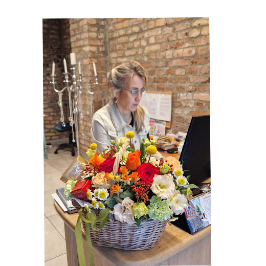 Obeležavanje krsne slave, jednog od najvažnijeg porodičnog praznika kod Srba, nemoguće je zamisliti bez cveća. To je gest koji dodiruje srce i dušu i donosi radost porodici koja slavi svog Sveca, bilo da je buket cveća u pitanju, cvetni aranžman ili korpa, cveće će najlepše reći „ Srećna Krsna Slava „ domaćine! Ova vesela Teleflorina korpa cveća sa Lindor Mix čokoladama i 200 gr kafe, idealan je poklon za tako posebnu priliku. Za potpuni doživljaj dodajte i flašu vina iz našeg asortimana! Dim. 40 x40cm.